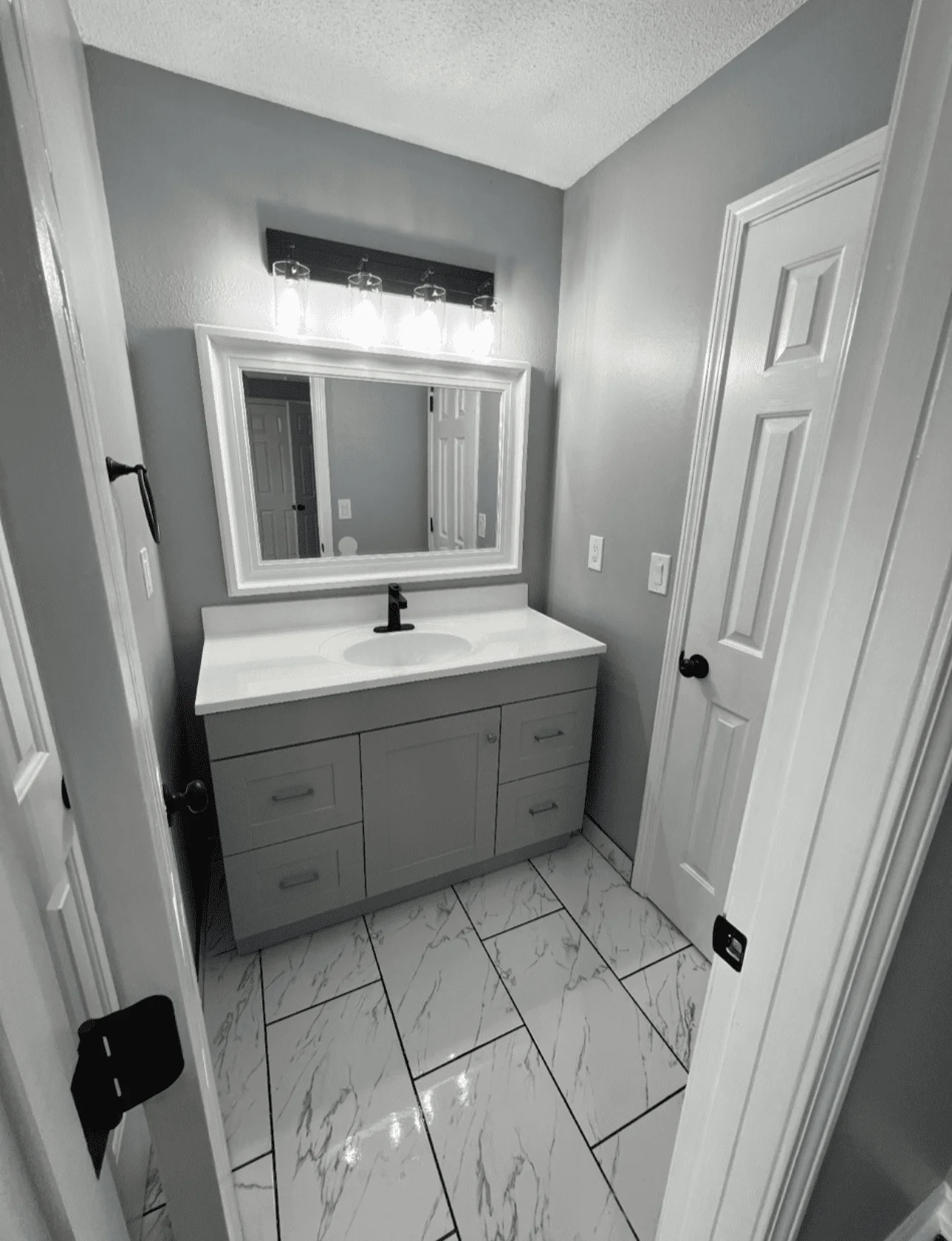 Our remodeling services include new showers, bathtubs, tile installation, vanities, lighting, and flooring.